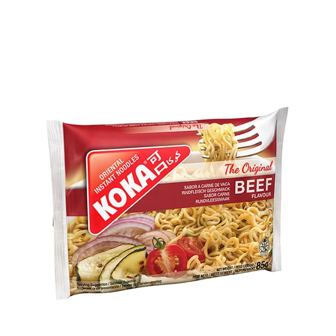 Koka The Original Beef Flavour Oriental Instant Noodles come in a convenient bulk pack of 30. These quick, halal, and vegetarian-friendly noodles are ideal for stocking up your pantry.