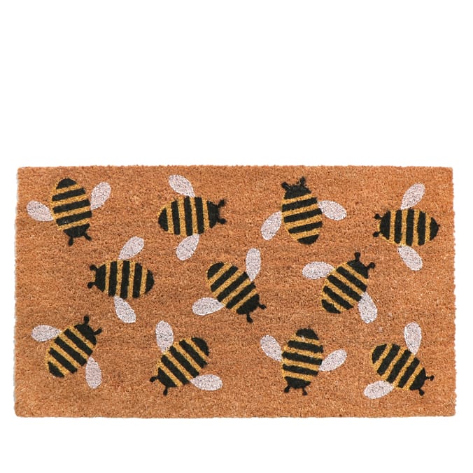 Home collections Printed pattern coir mat Bee design Bumble bee prints Premium coir High-traffic durability PVC backing Entryway charm Home décor Welcome mat