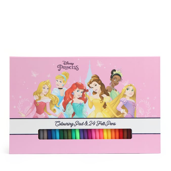 Unleash your child's creativity with the Disney Princess Colouring Set! Packed with a colouring pad and 24 vibrant felt pens, this set is perfect for little artists to bring their favourite princesses to life.