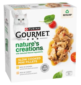 - GOURMET™ Gold Savoury Cake multipack features delicately chopped pieces of beef, chicken, salmon and tuna, carefully seasoned with just a hint of sauce